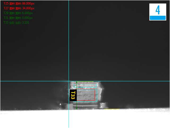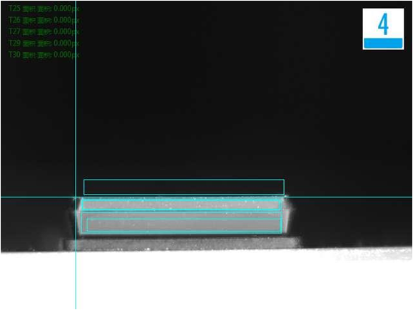 側(cè)面檢測不良品效果分析圖(發(fā)亮、尺寸):NG