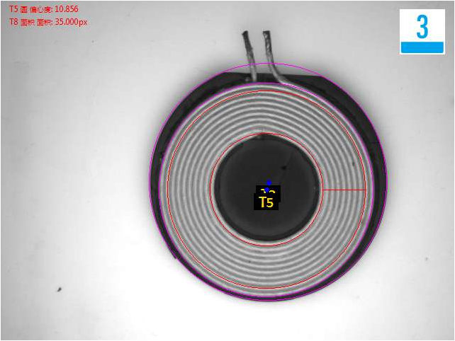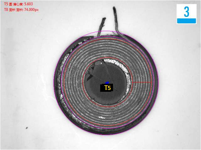 頂部檢測(cè)線圈偏移、臟污不良品效果分析圖: